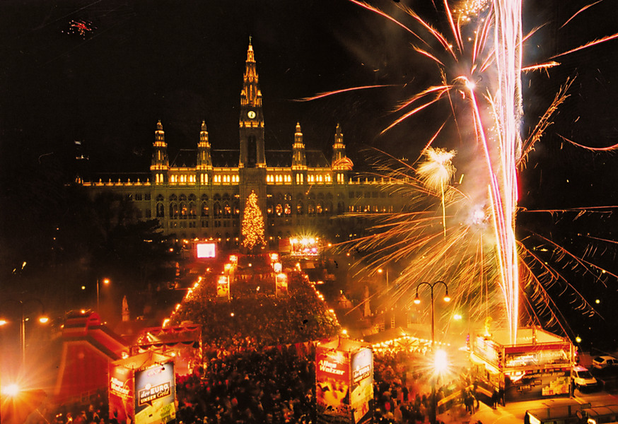 12月31日にウィーンの旧市街は、巨大なパーティー会場に変身します。午後の14時から夜中の2時まで、ウィーンの市街地の大晦日小路や市庁舎前広場、プラーター公園では最高の娯楽をお楽しみいただけます。大晦日小路沿いでは、数多くの飲食屋台がパンチや美味しい名物料理を提供しています。また数多くのスポットでは、娯楽のためのショープログラム、ワルツ、オペレッタ、ロック、ポップス、DJライン、民族音楽などがお楽しみいただけます。特に人気があるのは、グラーベンのクラシック・マイルです。ウィーンのダンス学校は、シュテファン広場で即席ワルツコースを行います。深夜には市庁舎広場やプラーターで盛大な花火が打ち上げられます。