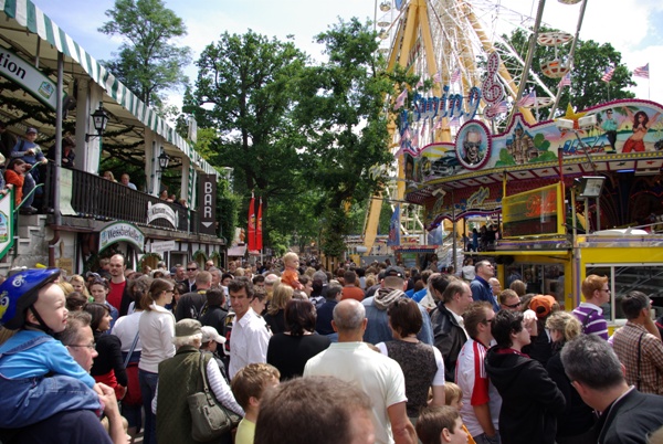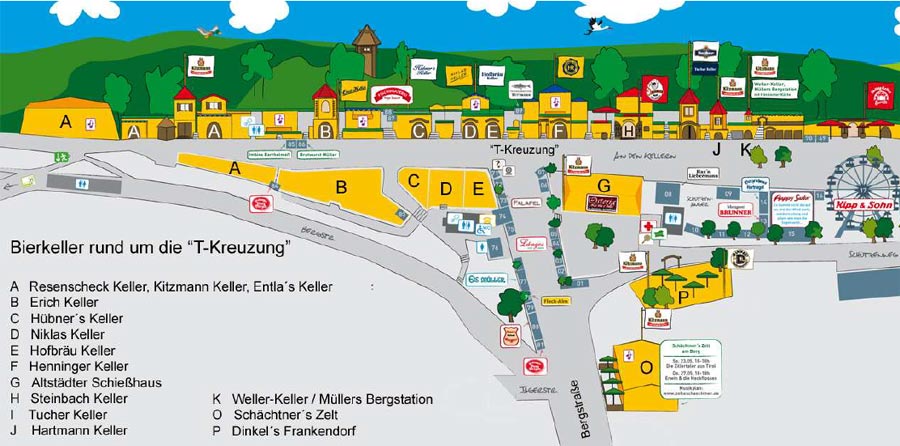 エアランゲン(Erlangen)は、ニュルンベルクに隣接する人口約10万人の都市。ドイツを代表する電機メーカー・シーメンス社の一拠点で、ニュルンベルク大学があり、一流企業と学生の街。ここで、250年以上の伝統を持つビール祭り『ベルクキルヒヴァイ』が、5月25日より12日間にわたって行われます。“ベルクキルヒヴァイ”とは、“丘の教会の奉献祭”という意味があり、宗教行事の一環として祝う祭り。秋に開催されるミュンヘンのオクトーバーフェストが、1810年に始まったのに対して、規模は小さいながら、更に55年古い歴史を持つビール祭りです。期間中は、一日にエアランゲンの人口に匹敵する約10万人の来訪客を見込まれています。17軒のビアケラーや屋台のほか、移動遊園地も設けられます。