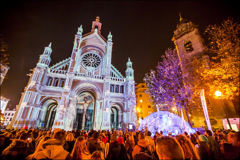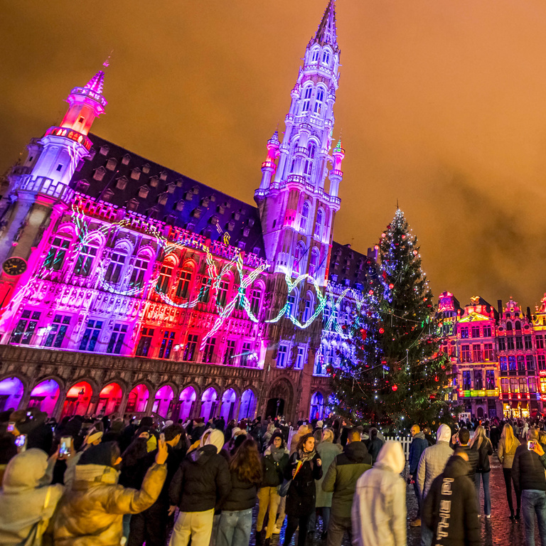 場所:証券取引所および聖カトリーヌ教会周辺(屋台小屋)、グランプラス(音と光のショー)